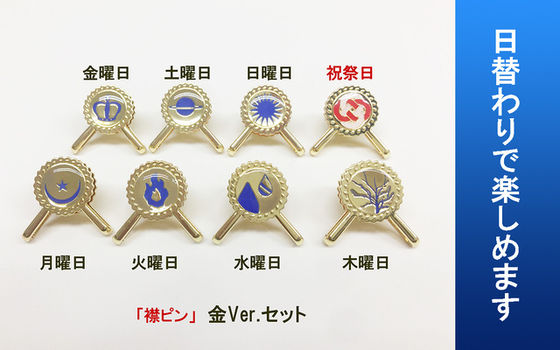 8種類の「襟ピン」を1セットにし、金バージョンと銀バージョンの2種類を用意いたしました。